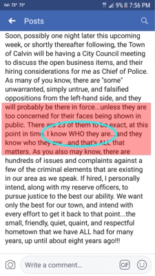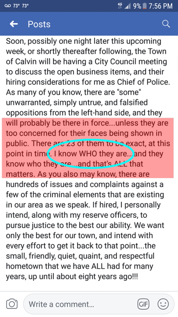 07-04-2018 Town of Calvin Police Chief Delbert Harden
